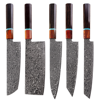 Conjunto de facas de cozinha profissional, conjunto de facas de cozinha com cabo de resina vg10 67 camadas de aço de damasco